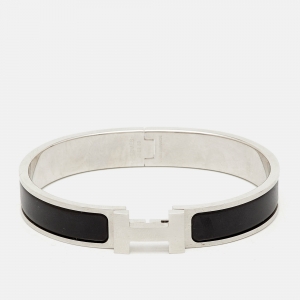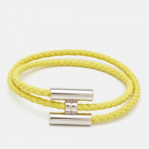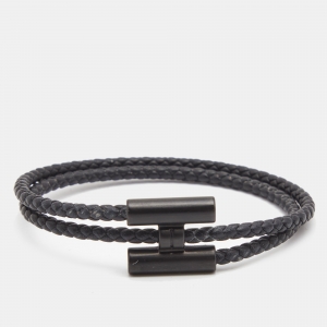 Hermès Tournis Tresse Black Leather Palladium Plated Bracelet