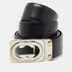 Gucci Black Leather Double G Buckle Belt 95cm