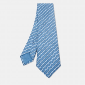 Hermès Blue Levez l'Ancre Printed Silk Slim Tie