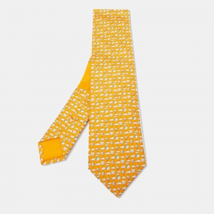 Hermès Yellow Airplane Cloud Print Silk Traditional Tie