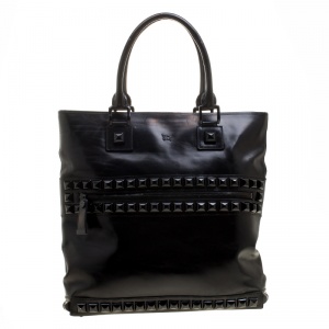 Burberry Black Glazed Leather Studded Tote