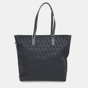 Valentino Black Canvas Toile Iconograph Fabric Shopper Bag