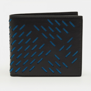 Bottega Veneta Black/Blue Perforated Leather Bifold Wallet