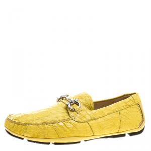 Salvatore Ferragamo Yellow Lizard Leather Sardegna Loafers Size 44