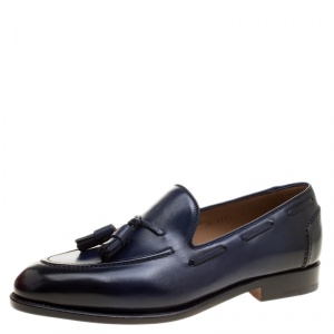 Salvatore Ferragamo Navy Blue Leather Loreno Tassel Loafers Size 44.5