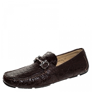 Salvatore Ferragamo Mocca Crocodile Leather Pablo Penny Loafers Size 43