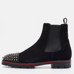 Christian Louboutin Black Suede Melon Spikes Ankle Boots Size 43
