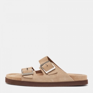 Brunello Cucinelli Beige Suede Flat Slides Size 41