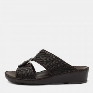 Ermenegildo Zegna Black Woven Leather Strap Flat Sandals Size 39
