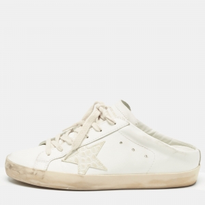 Golden Goose White Leather and Croc Embossed Superstar Sneaker Mules Size 39
