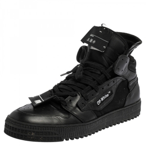 Off-White Black Leather And Canvas Off-Court 3.0 Hight Top Sneakers Size 44