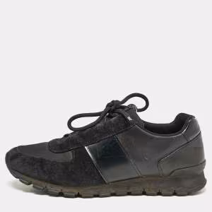 Prada Black Leather and Suede Lace Up Sneakers Size 44.5