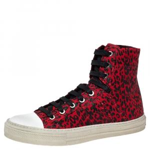Amiri Red/Black Canvas Glitter Leopard Print Sunset Vintage Sneakers Size 40