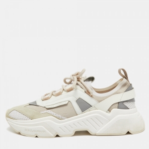 Dolce & Gabbana Beige/Brown Leather and Suede Low Top Sneakers Size 41