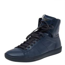Saint Laurent Paris Monochrome Perforated Leather High Top Sneakers Size 39