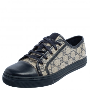 Gucci Beige/Blue Supreme Canvas And Leather Cap Toe Low Top Sneaker Size 40
