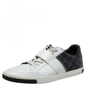 Louis Vuitton White Leather and Damier Graphite Canvas Low Top Sneakers Size 40.5