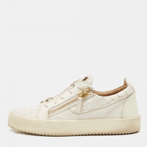 Alexander McQueen White/Red Leather and Watersnake Oversized Sneakers Size 41