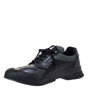 Prada Sport Black Leather And Mesh Lace Up Low Top Sneakers Size 42