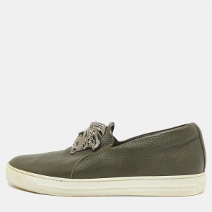 Versace Black Leather Logo Embossed Low Top Sneakers Size 40