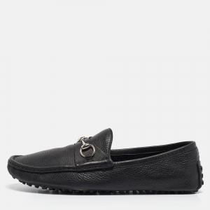Gucci Black Leather Jordaan Horsebit Slip On Loafers Size 44