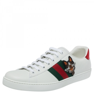 Gucci White Leather Ace Snake Embroidered Low Top Sneakers Size 43