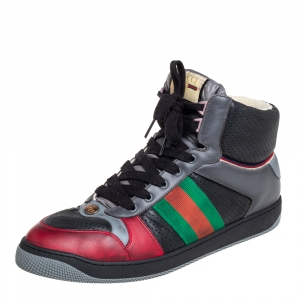 Gucci Black /Red Leather And Mesh Vintage Web Tennis Sneakers Size 44.5