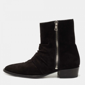 Amiri Black Pleated Suede Ankle Boots Size 42