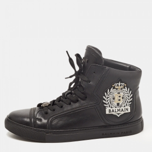 Saint Laurent Black Leather Studded High Top Sneakers Size 42