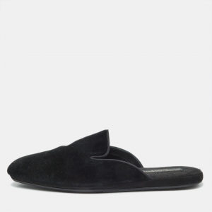 Dolce & Gabbana Black Velvet Embroidered Floral Smoking Slippers Size 44