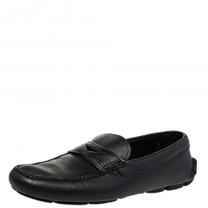 Prada Black Leather Penny Slip On Loafers Size 42.5