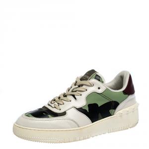 Valentino Military Green Fabric and Leather Camouflage Bounce Trainer Sneakers Size 43