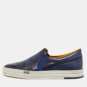 Lanvin Navy Blue Leather and Suede Slip On Sneakers Size 45
