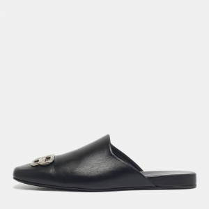 Balenciaga Black Leather Velcro Track Strap Sandals Size 44