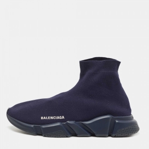 Balenciaga Blue Knit Fabric Speed Trainer Sneakers Size 43