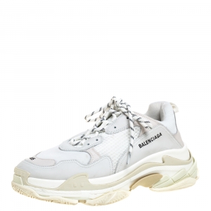 مملوكة مسبقًا Balenciaga Tri Color Leather and Mesh Triple S Trainer Sneakers Size 45