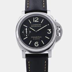 Panerai Black Stainless Steel Luminor Marina PAM00005 Manual Winding Men's Wristwatch 44 mm