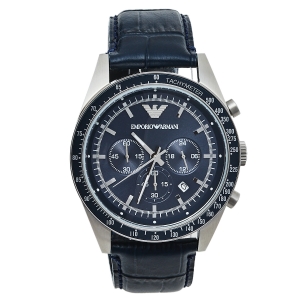 Emporio Armani Navy Blue Stainless Steel Leather AR6089 Men's Wristwatch 46 mm