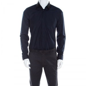 Kenzo Navy Blue Tiger Crest Embroidered Linen Blend Button Down Shirt M