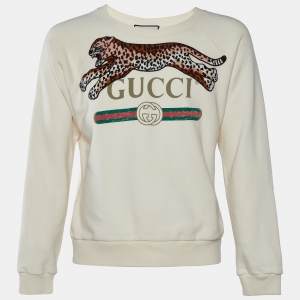 Gucci Black Logo Printed Cotton Leopard Applique Detail Sweatshirt S