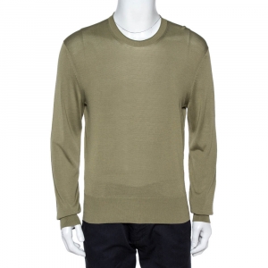 Tom Ford Olive Green Silk Knit Crew Neck Jumper XL