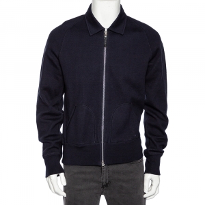 Tom Ford Navy Blue Cotton Knit Zip Front Point Collar Sweatshirt XL