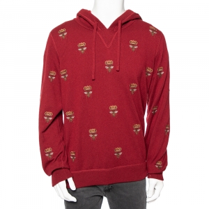 Dolce & Gabbana Maroon Cashmere Bee & Crown Embroidered Hoodie XL