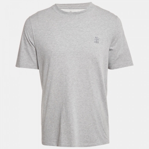 Kiton Grey Logo Embroidery Cotton Crew Neck T-Shirt S