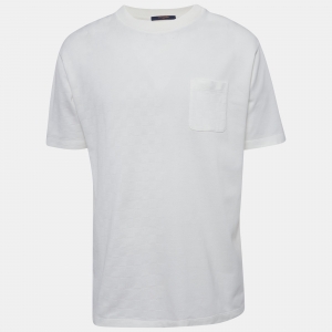 Prada White Cotton Knit Pocket Logo Detail T-Shirt L