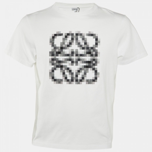 Loewe White Anagram Pixel Embroidered Cotton Crew Neck T-Shirt XXL