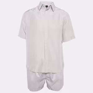 Balenciaga Unisex Burgundy All Over Logo Patterned Satin Shirt & Shorts Set S/M
