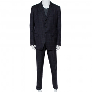 Gucci Navy Blue Bee Patterned Plaid Wool Suit M