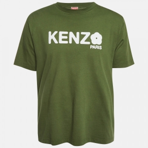 Kenzo Green Elephant Printed Cotton Knit T-Shirt L