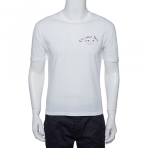 Dior White Cotton Logo Printed Crew Neck T-Shirt XS